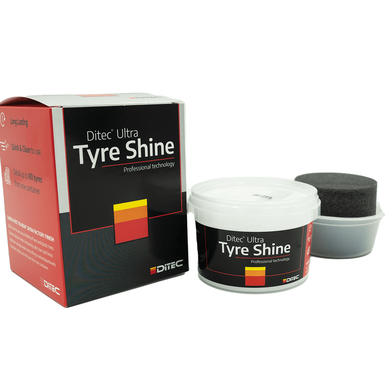 Ditec Tyre Dressing fornyer dekkene og gir dem en svart, naturlig glans som har svært positiv effekt på særlig eldre gummi. Tyre Dressing er vannbasert, og brukes som en del av en grundig hjulvask.