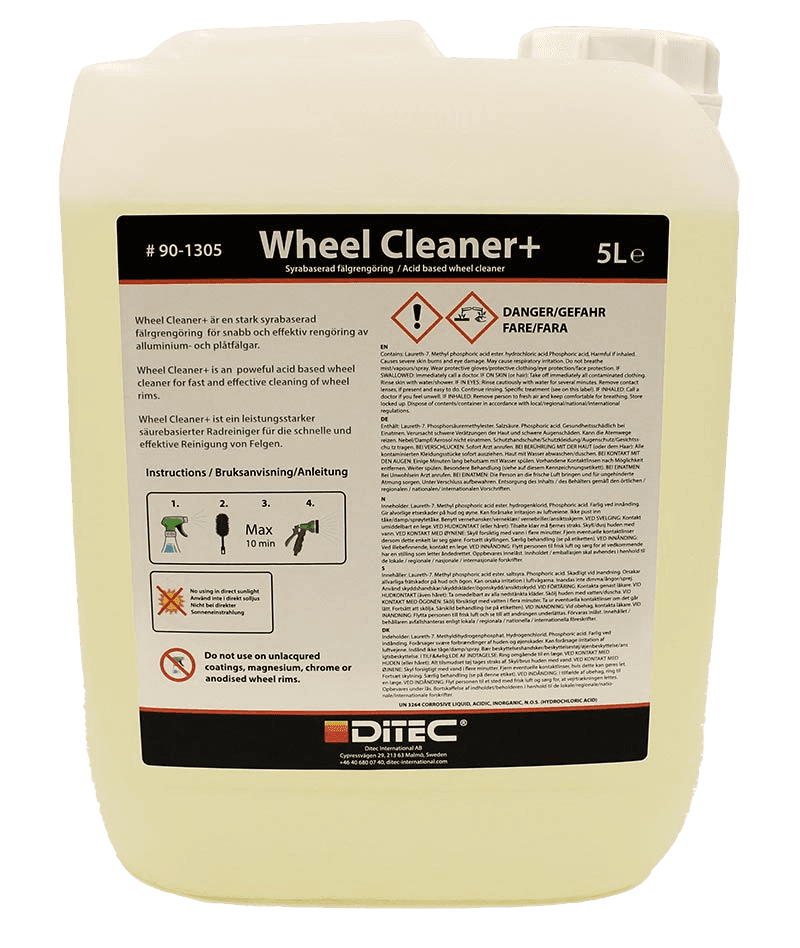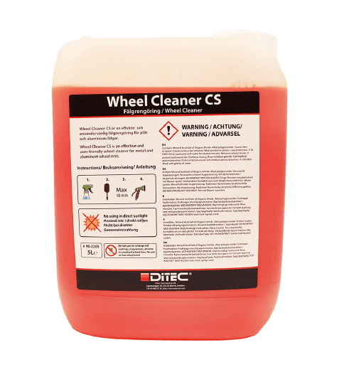 Wheel Cleaner CS er en effektiv felgrens av høy ytelse GEL for dekk og felger som er syrefritt. Det er en kraftig rensemiddel som fjerner smuss, bremsestøv og andre skittrester fra felgene og dekkene dine. Det er enkel å bruke og kan brukes på både stål- og aluminiumsfelger. Det er også biologisk nedbrytbart og inneholder ikke skadelige kjemikalier, noe som reduserer risikoen for skader på mennesker og miljøet. Brukervennlig produkt Ikke-giftig Ikke-rykende og duftende - en total fornøyelse å jobbe med. Ikke-etsende for huden. Ikke-korrosiv til bløtt stål. Alle brukervennlige funksjoner gjør Ditec Wheel Cleaner CS mye sikrere i bruk enn konvensjonelle syrebaserte hjulrensere.