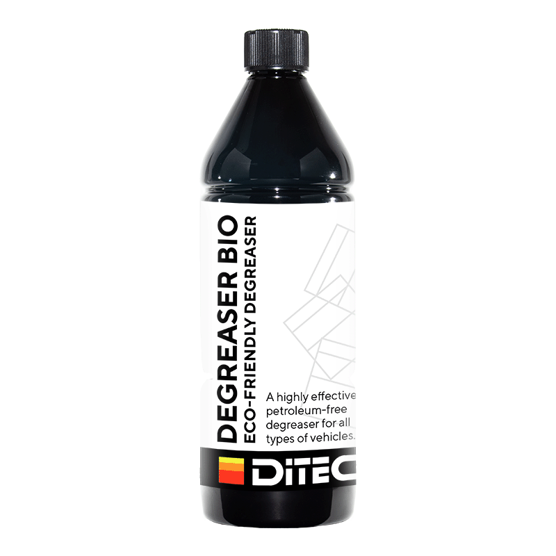 Dette er den kraftige avfettingen for den miljøbevisste! For å fjerne tjære og asfalt, gjerne blandet med salt vinterstid, trenger du en skikkelig avfetting. Vi har to alternativer. Dette er den vannbaserte som er mest miljøvennlig. I motsetning en petroleumsbasert avfetting (Kaldavfetting), er denne så godt som luktfri, og skader ikke kromlister. Tilbakemelding fra en erfaren vasker som testet denne: Jeg prøvde miljøavfettingen på en bil som ikke hadde vært vasket på tre måneder, den hadde sikkert gått 3000 km. Etter to minutter virketid, spylte jeg av med kaldt vann fra en dårlig høytrykkspyler (vaskehall). Den fjernet likevel alt av asfalt og tjære! Og etter svampvasken var bilen gullende rein! Bruksområde Ditec Miljøavfetting kan benyttes på alle flater som tåler vann. Angriper ikke plast, stål, aluminium eller andre metaller. Dette er en miljøvennlig avfetting som egner seg godt til bilvasken hjemme på tunet, eller til senter med en tydelig miljøprofil. En meget effektiv avfetting for alle typer kjøretøy. Den fungerer like bra på både våte og tørre flater. Den løser opp olje, tjære, asfalt, vegsalt og annen skitt på en rask og skånsom måte. Kan brukes til alle typer avfetting. NB! Lagres frostfritt - ikke la den ligge i bilen om vinteren! Hvorfor er denne så effektiv når den er vannbasert? Miljøavfetting løser opp flere typer av smuss p.g.a. den unike sammensetningen. Dette er en nøye balansert sammensetning i form av emulsjon som både løsner, emulgerer og dispergerer på en skånsom måte, som rengjør skitten fra overflatene. Helt fri for petroleumsbaserte ingredienser, og i stedet er oppbygget på emulgatorer, overflateaktive stoffer og vegetabilske estrer. Egenskaper Ditec Miljøavfetting er et Svanemerket miljøvennlig alternativ. Den er ikke merkepliktig. Samtlige ingredienser er biologisk nedbrytbare ihht OECDs guide line. Bruksanvisning Spray på miljøavfetting nedenfra og opp, spesielt rundt skjermbuer, nedre deler av dørene og sideflater, samt bakpart på bilen. De delene av bilen er spesielt utsatt for asfaltpartikler, så vær nøye. Unngå å spraye på blanke lister og glass. La produktet virke 3-5 minutter før du spyler, helst med høytrykk. Spyl nedenfra og opp. Ditec Miljøavfetting kan legges på både tørre og våte overflater. Til motorvask: Vent til motoren er avkjølt. Dekk til elektriske komponenter. Vær varsom ved spyling med høytrykksvasker. Vask aldri i direkte sollys. La aldri produktet tørke på overflaten Dosering Ferdig dosert En liter holder normalt til tre bilvask. Emballasje 1 liter