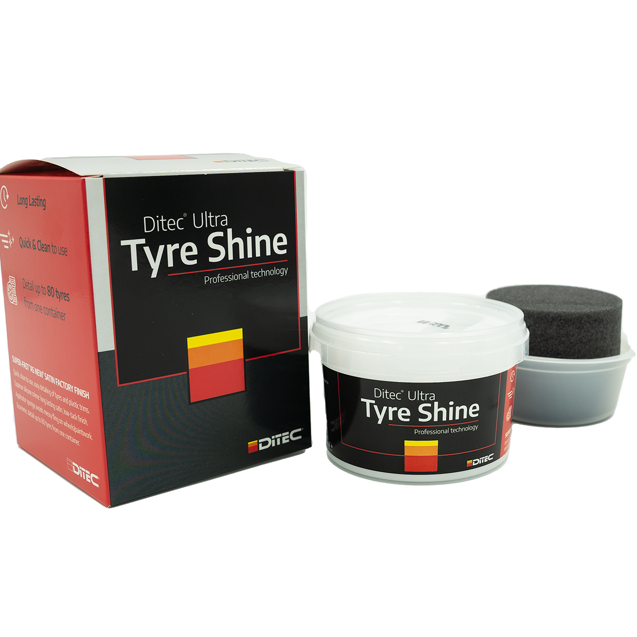 Overlegen kvalitet, langvarig dekkkrem for enkel detaljering av dekk og plastdekk. Her får du opp til 80 dekk fra en boks. Svamp følger med.